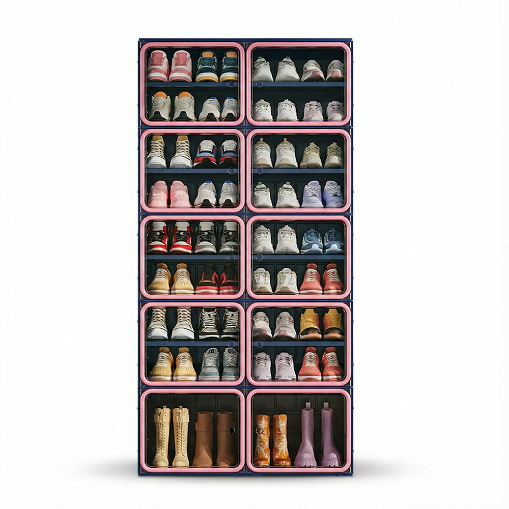 Transform your cluttered entryway into a sleek gallery. Our modular system maximizes vertical space, keeping your home organized and your footwear pristine — in seconds.