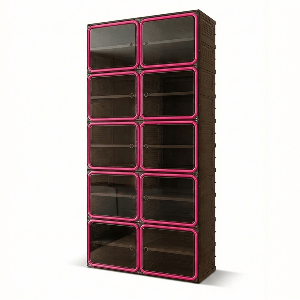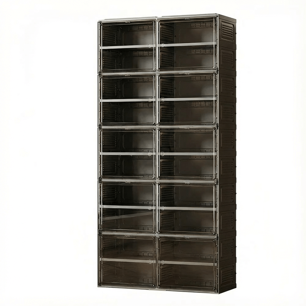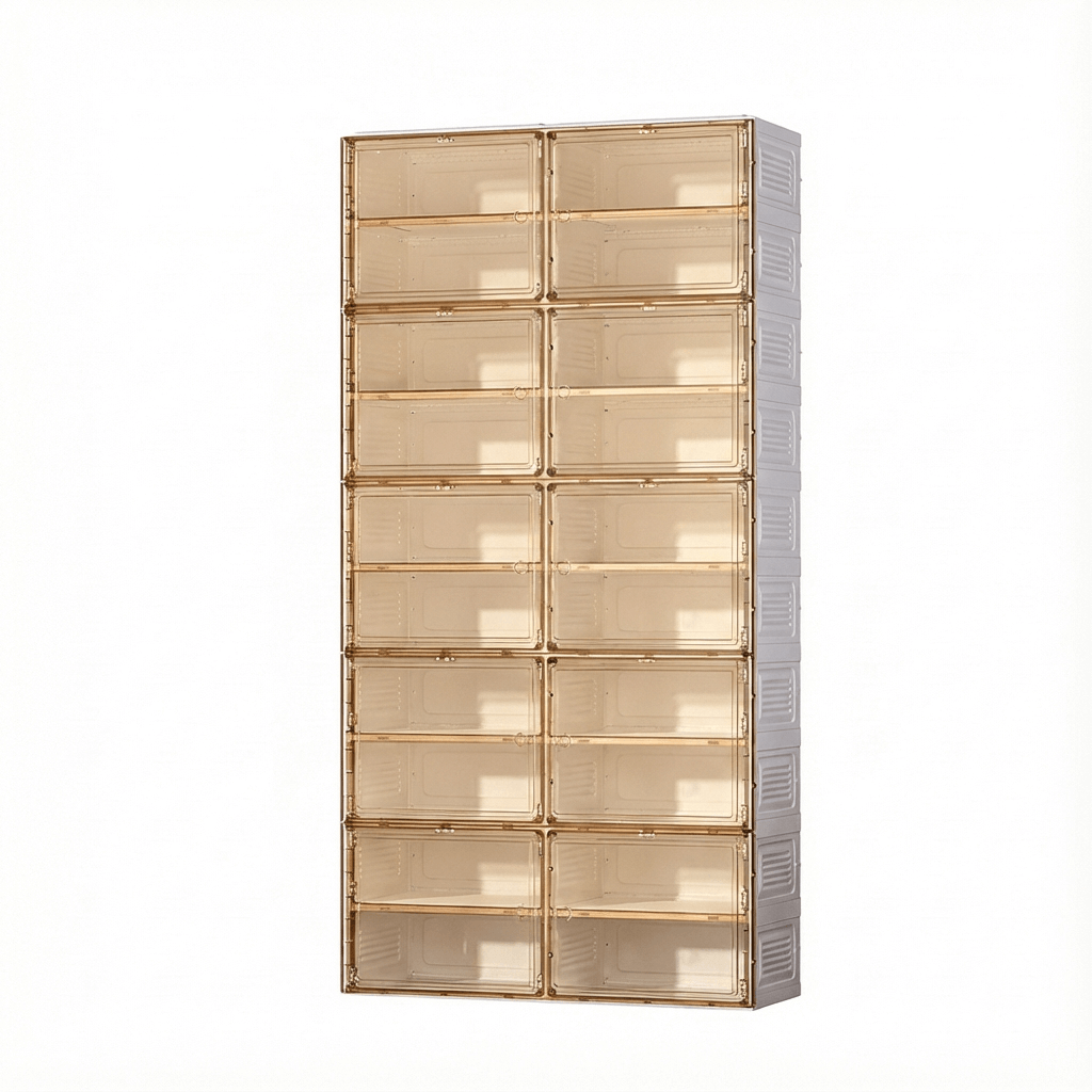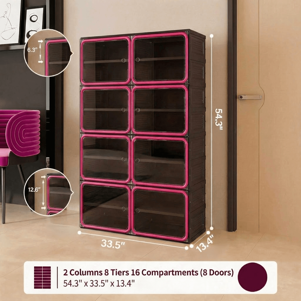 Features a flexible internal layout designed to accommodate various footwear styles. From high-tops to heels, the optimized dimensions ensure organized, visual access to every pair.