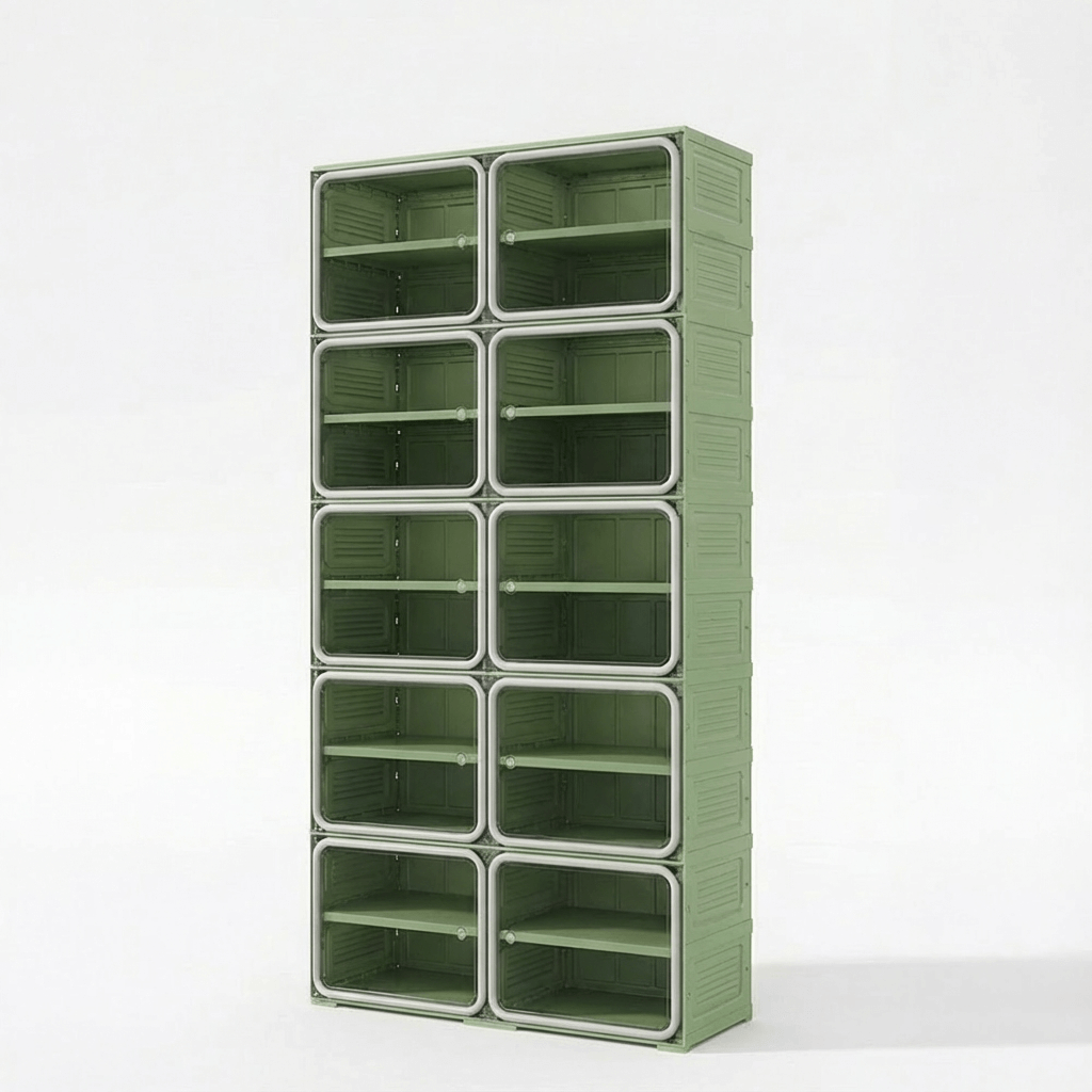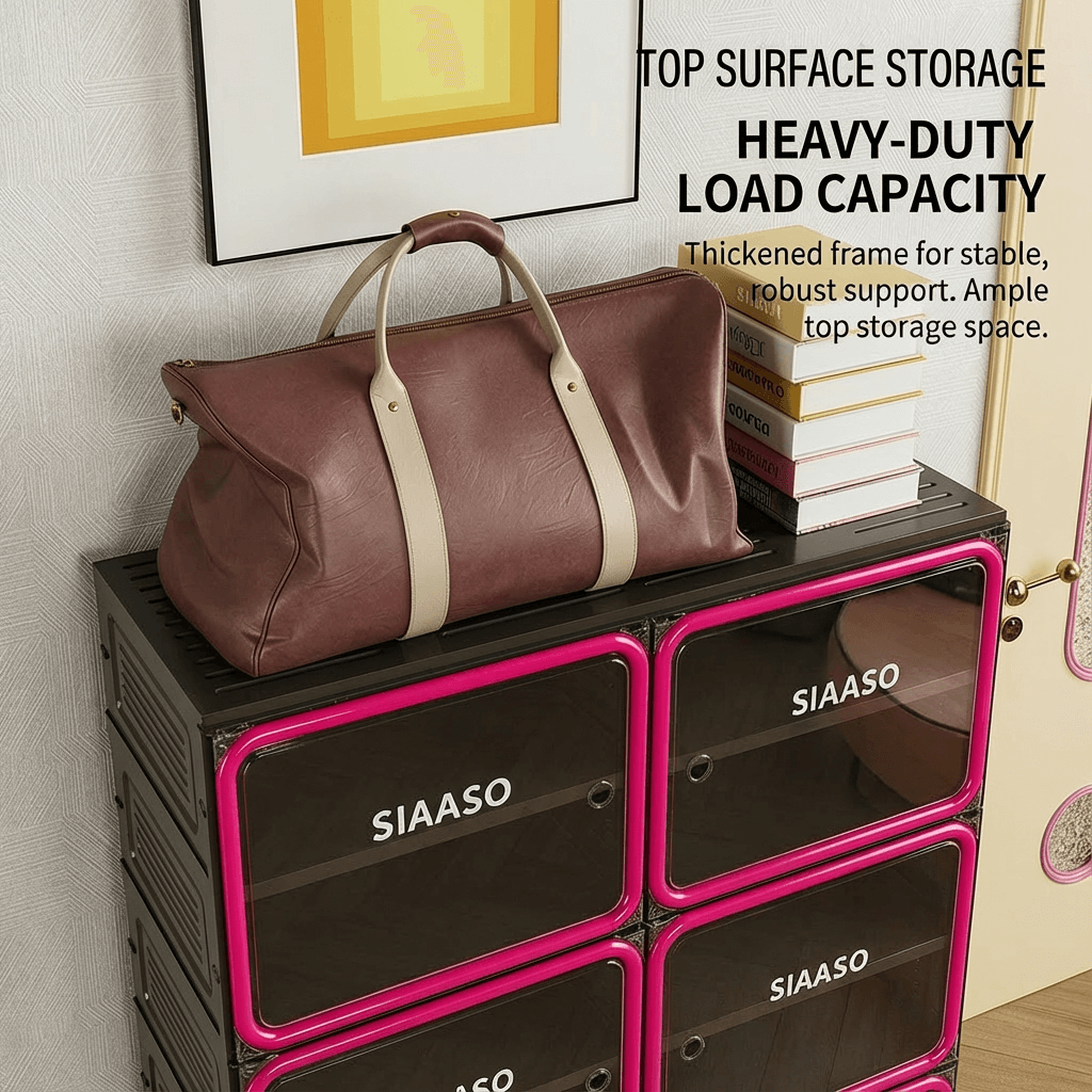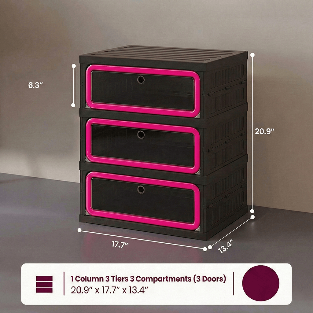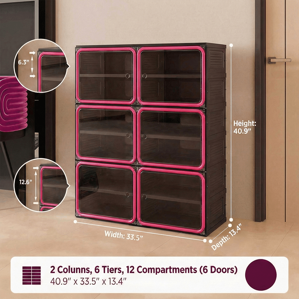 Features a flexible internal layout designed to accommodate various footwear styles. From high-tops to heels, the optimized dimensions ensure organized, visual access to every pair.